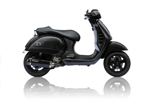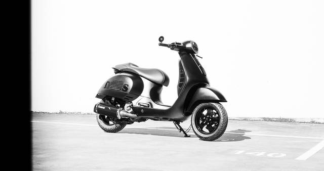 Sustentando a nova silhueta da Vespa está uma suspensão ajustável YSS Blackline, enquanto os pneus Michelin garantem firmeza na estrada. O motor ganha voz através de um escapamento completo da Akrapovič, revestido em cerâmica preta - performance envolta em discrição.
